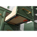 - 1 door with inner shelf, 3 drawers, upper drawer with wood organizer