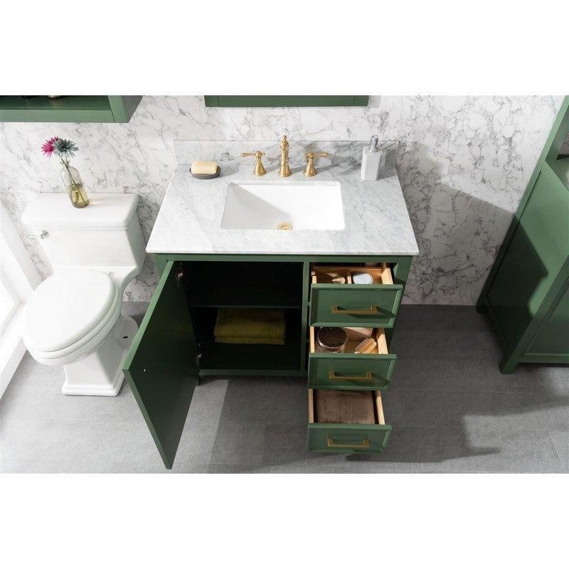 Legion Furniture WLF2136-VG 36 Inch Vogue Green Finish Sink Vanity Cabinet with Carrara White Top
