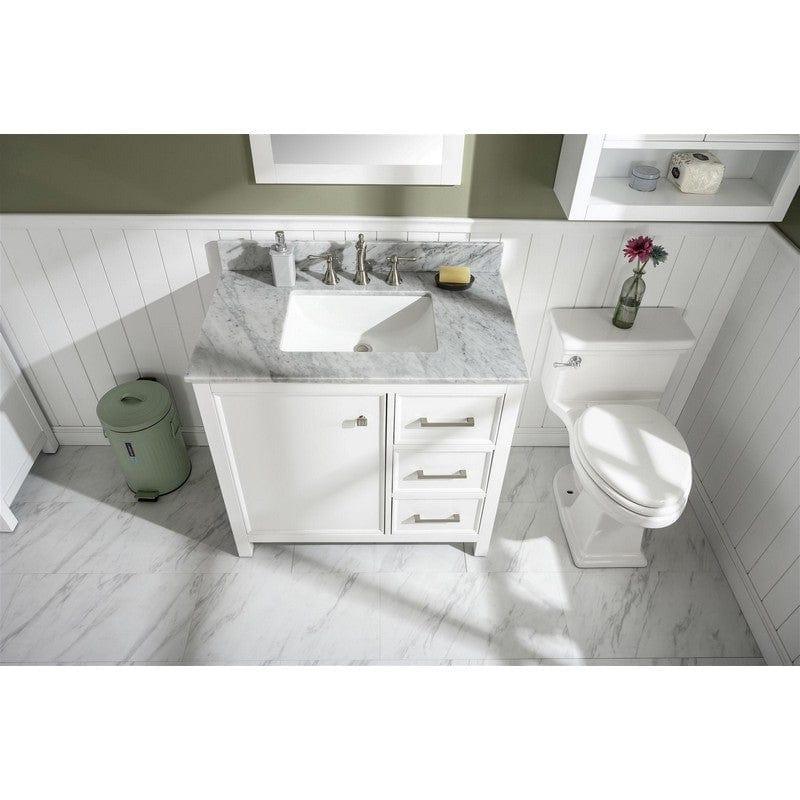 Legion Furniture WLF2136-W 36 Inch White Finish Sink Vanity Cabinet with Carrara White Top
