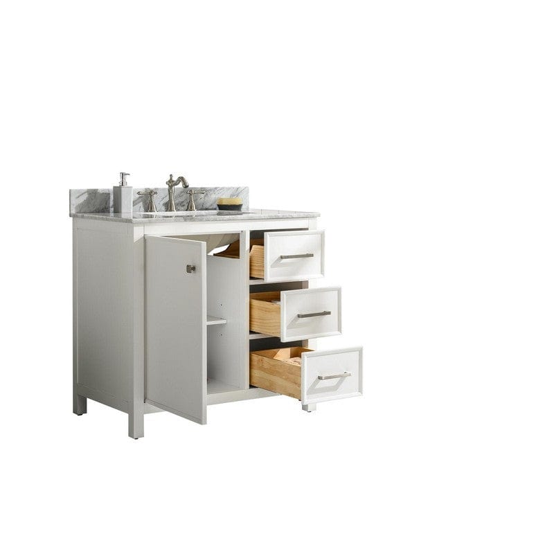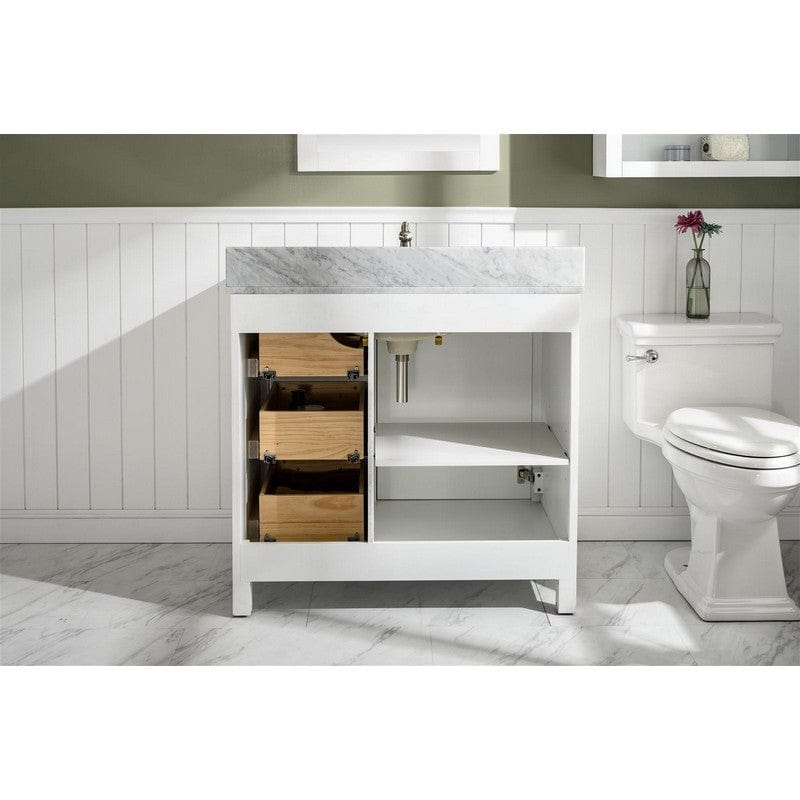 Legion Furniture WLF2136-W 36 Inch White Finish Sink Vanity Cabinet with Carrara White Top Features