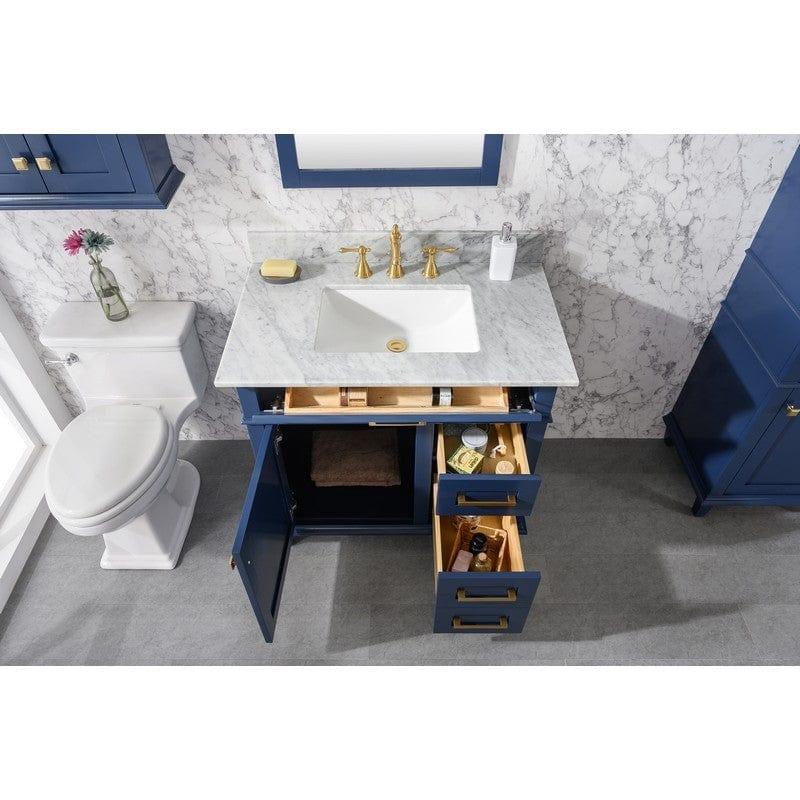 Legion Furniture WLF2236-B 36 Inch Blue Finish Sink Vanity Cabinet with Carrara White Top