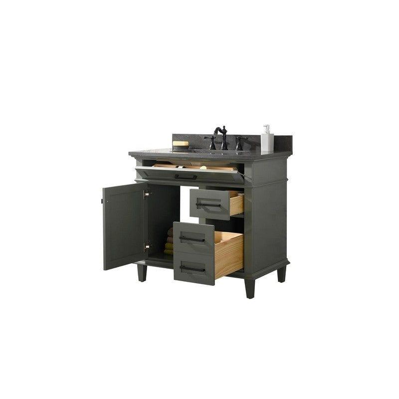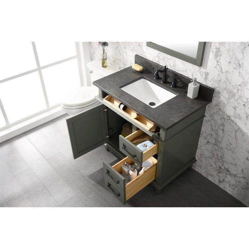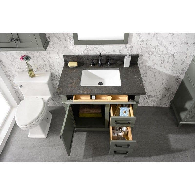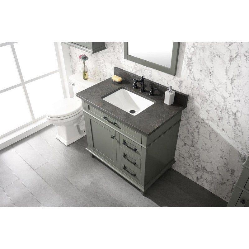 Legion Furniture WLF2236-PG 36 Inch Pewter Green Finish Sink Vanity Cabinet with Blue Lime Stone Top Features
