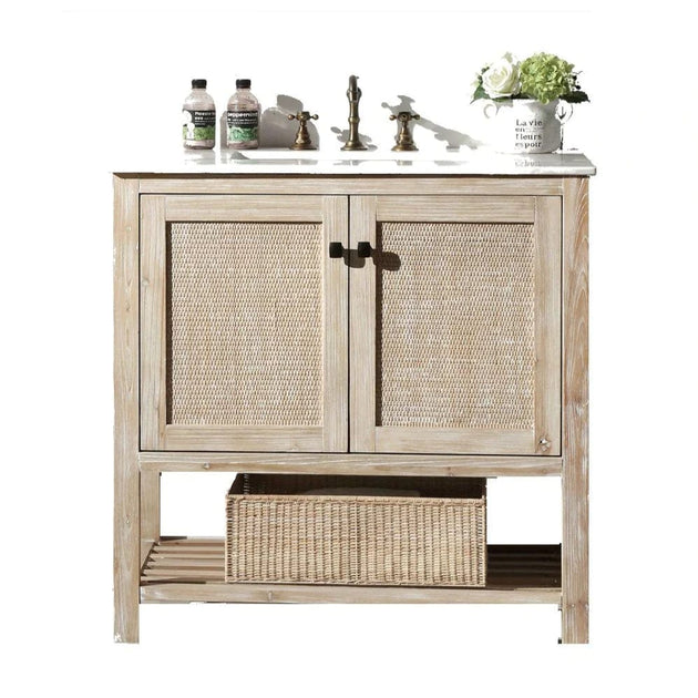 Legion Furniture 36 Inch Solid Wood Vanity in Brown with Moon Stone Top | WH5136-BR