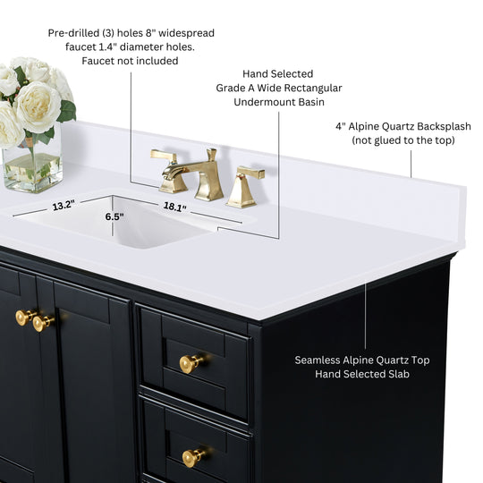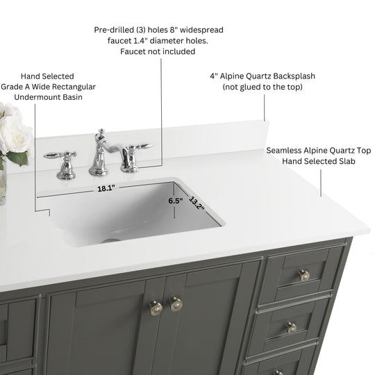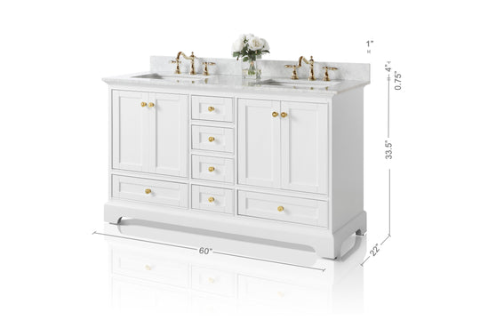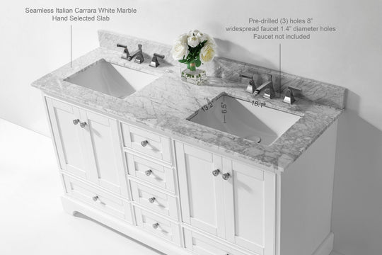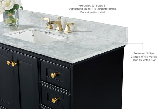Ancerre Lauren Bathroom Vanity with Sink and Carrara White Marble Top Cabinet Set - VTS-LAUREN-48-W-CW