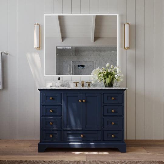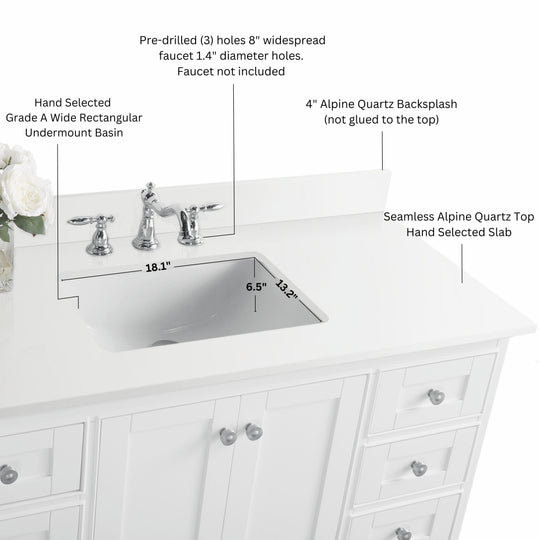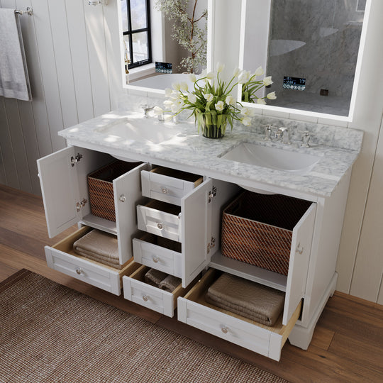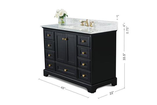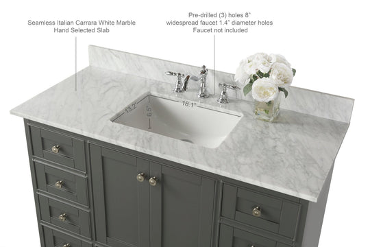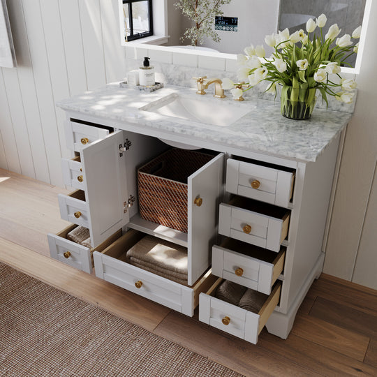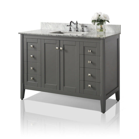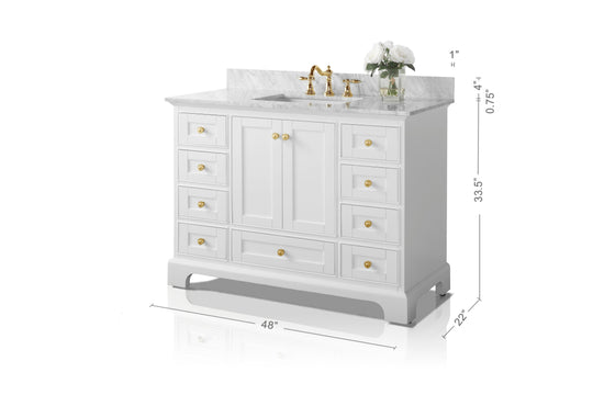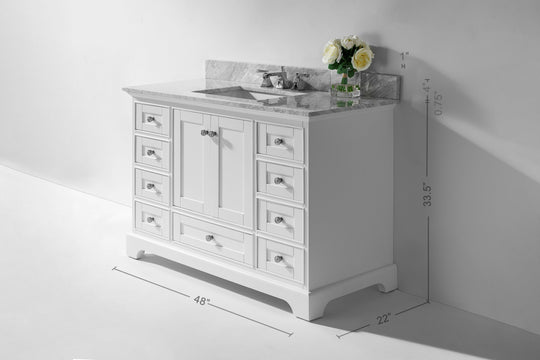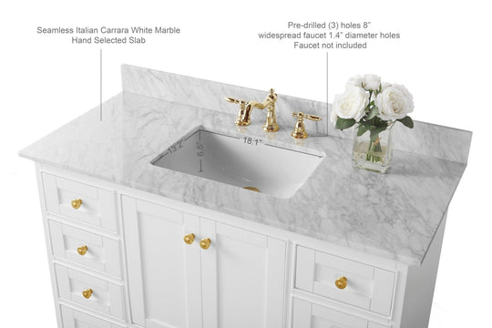 Ancerre Shelton Bathroom Vanity with Sink and Carrara White Marble Top Cabinet Set - VTS-SHELTON-48-W-CW