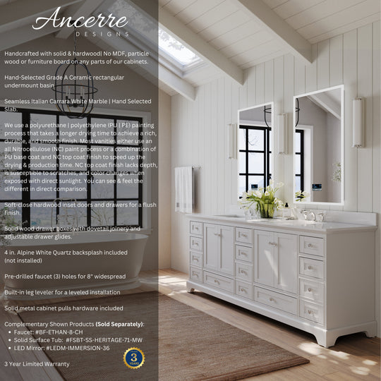 Ancerre Hayley Bathroom Vanity with Sink and Carrara White Marble Top Cabinet Set - VTS-HAYLEY-36-W-CW