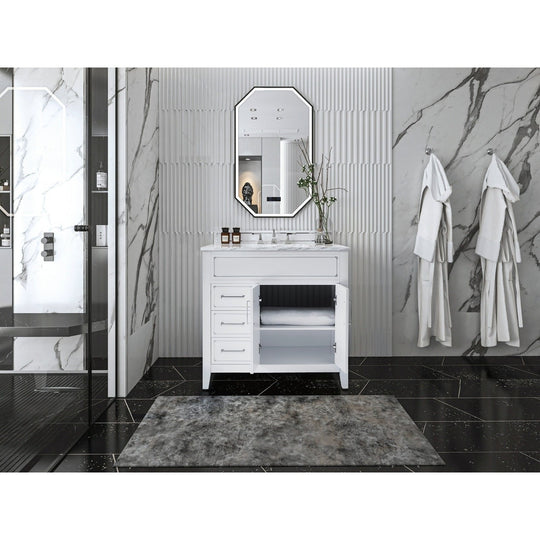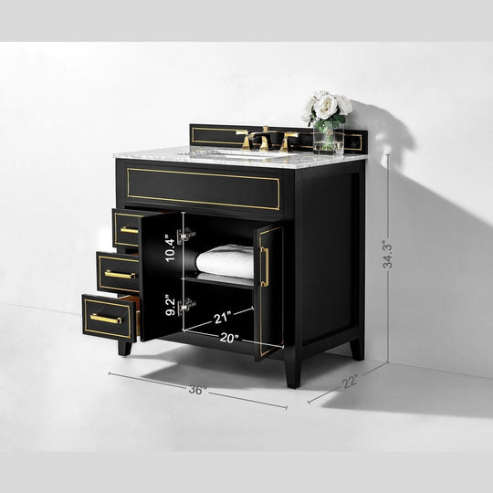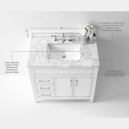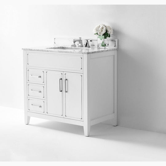 Ancerre Aspen Bathroom Vanity with Sink and Carrara White Marble Top Cabinet Set - VTS-ASPEN-36-W-CW