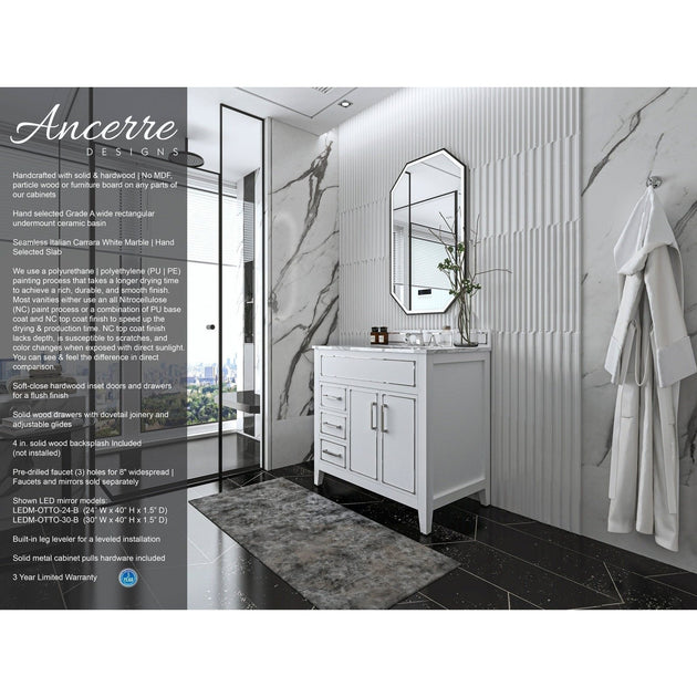 Ancerre Elizabeth Bathroom Vanity with Sink and Carrara White Marble Top Cabinet Set - VTS-ELIZABETH-36-W-CW