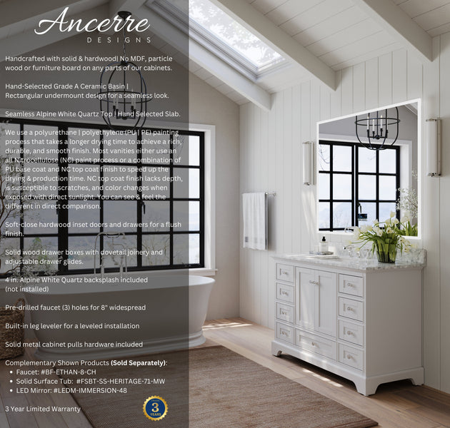 Ancerre Hannah Bathroom Vanity with Sink and Black Quartz Top Cabinet Set - VTSM-HANNAH-48-L-W-B
