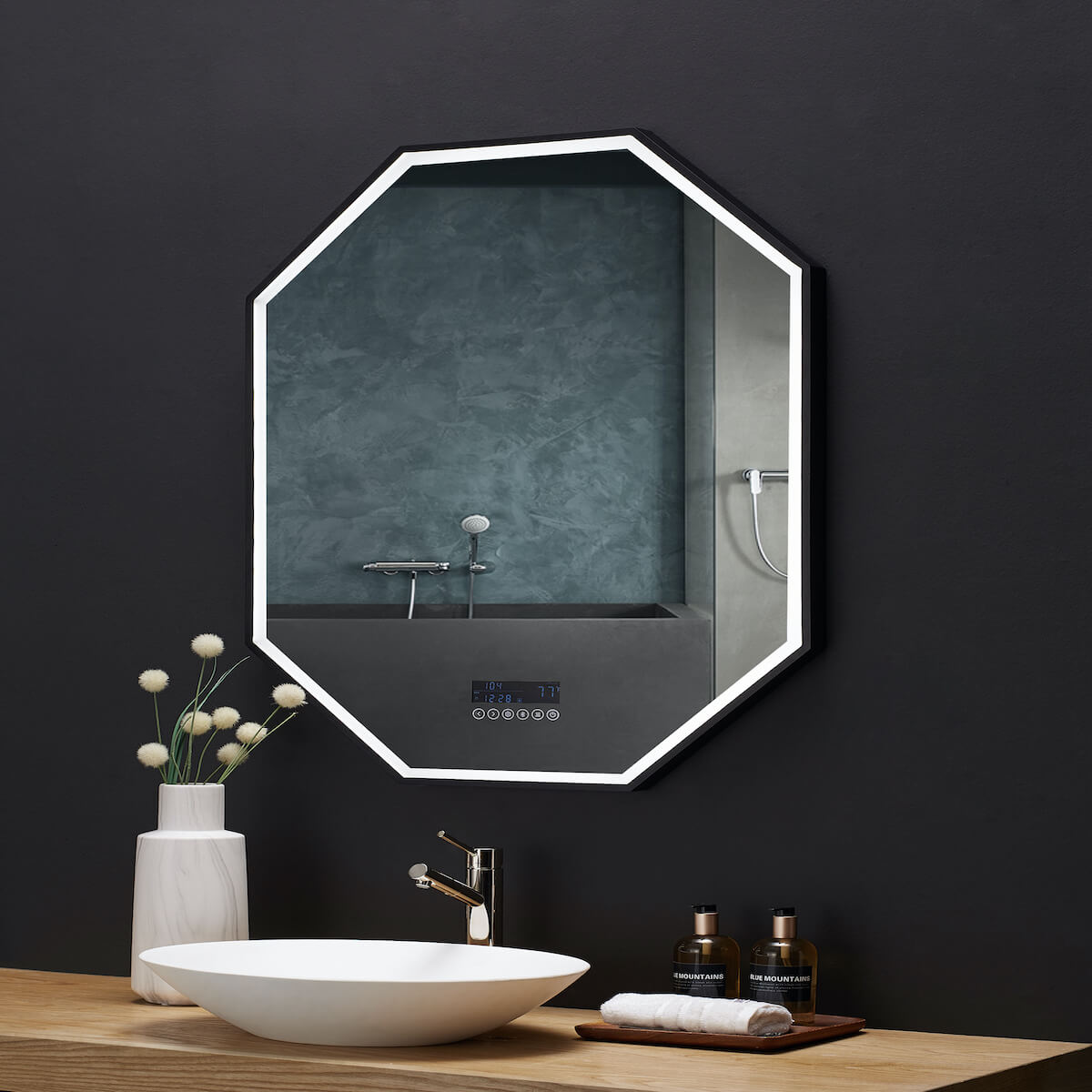Ancerre Designs 24" LED Otto Mirror – Octagon Smart Mirror with Bluetooth, Defogger & Digital Display