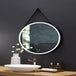 Designed with a unique vegan leather strap and durable hanging post, this mirror adds a sleek, contemporary touch to any space. The strategically placed LED illumination along the outer border provides enhanced visibility, making it perfect for bathroom vanities, dressing areas, and entryways. Pair it with any Ancerre Designs bathroom vanity collection for a cohesive, high-end look.