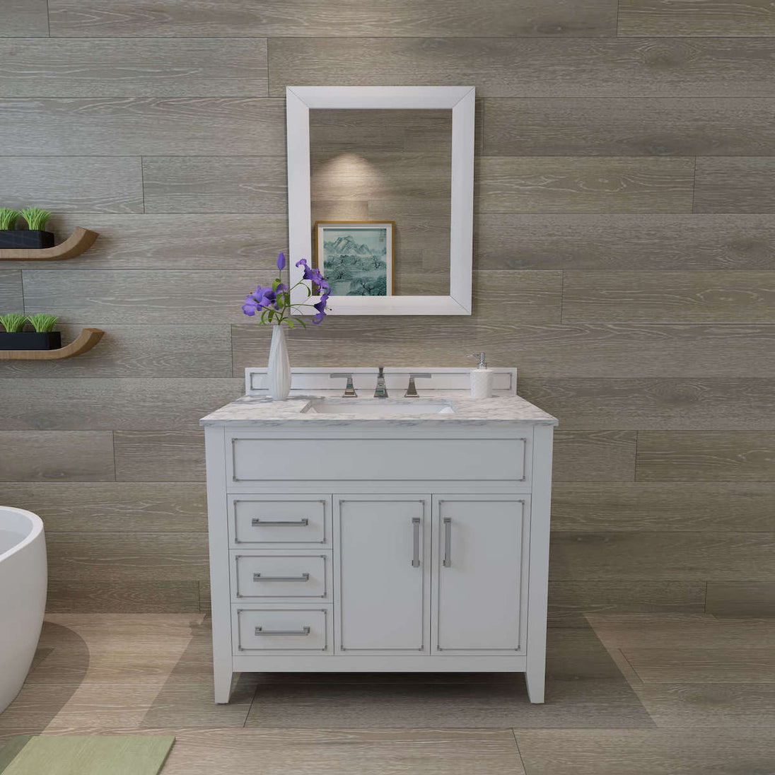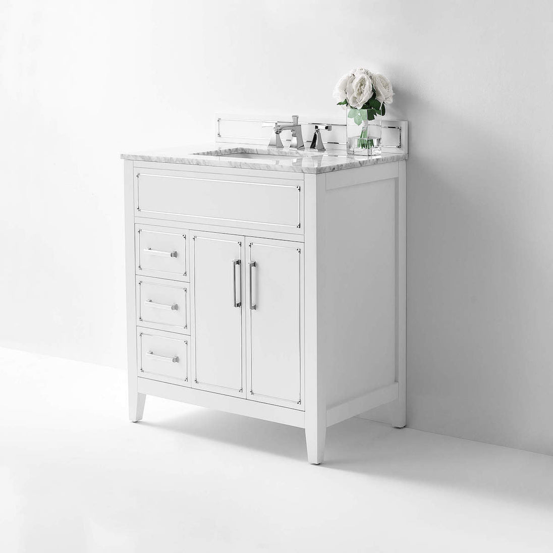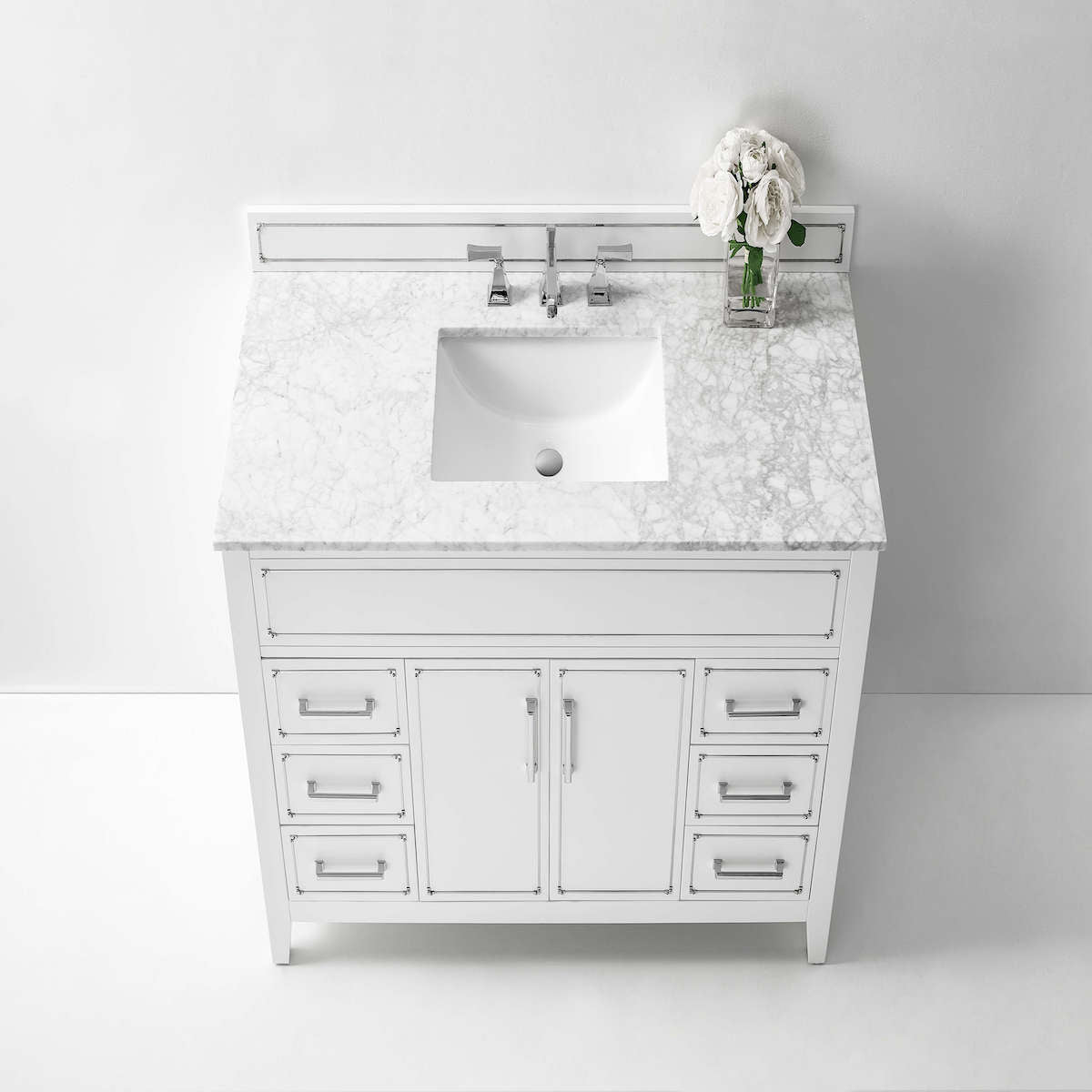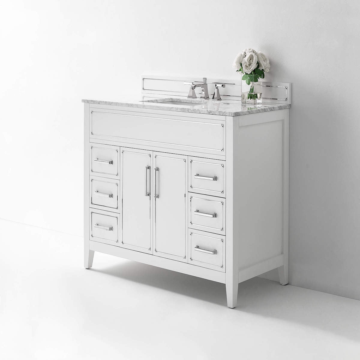 Ancerre Designs Aspen Single Vanity – Luxury Freestanding Bathroom Vanity with Italian Carrara Marble Top