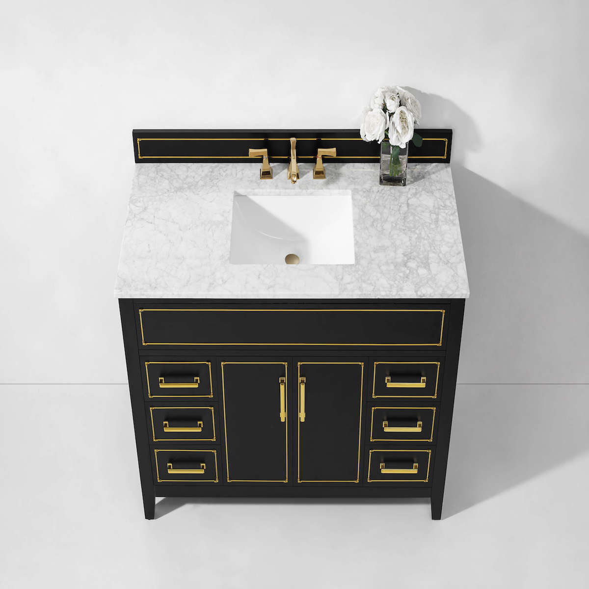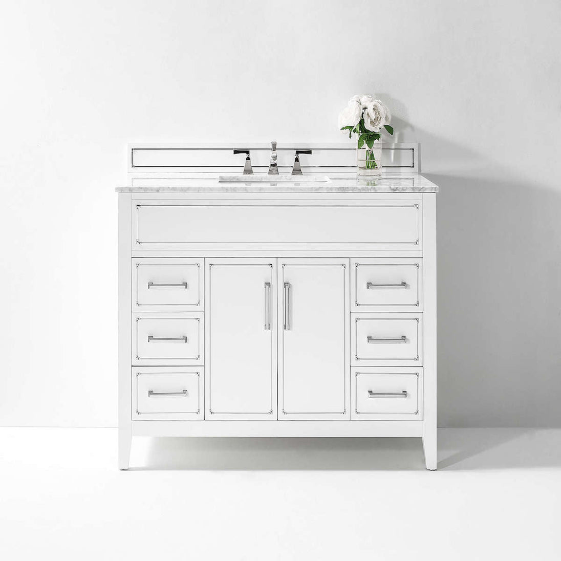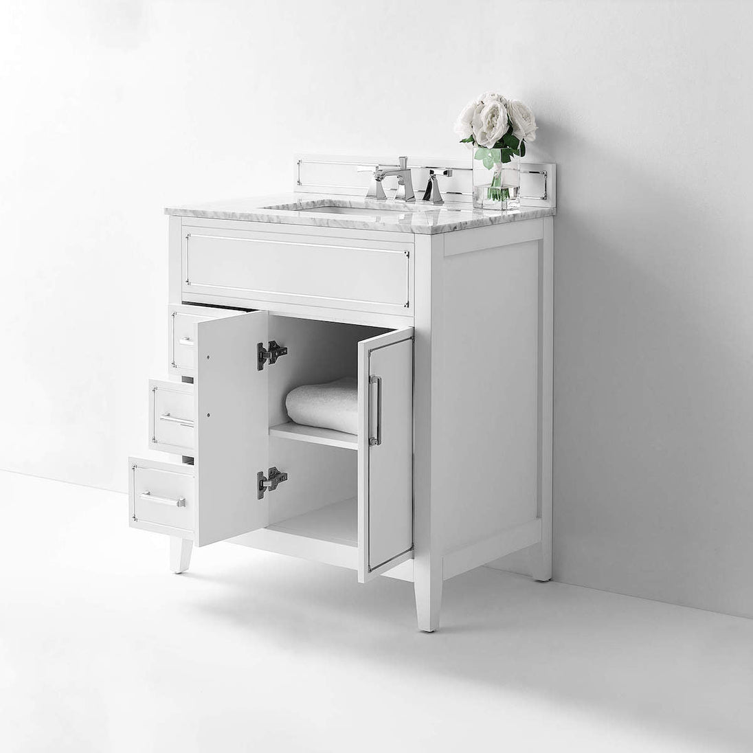 Ancerre Designs Aspen Single Vanity – Luxury Freestanding Bathroom Vanity with Italian Carrara Marble Top