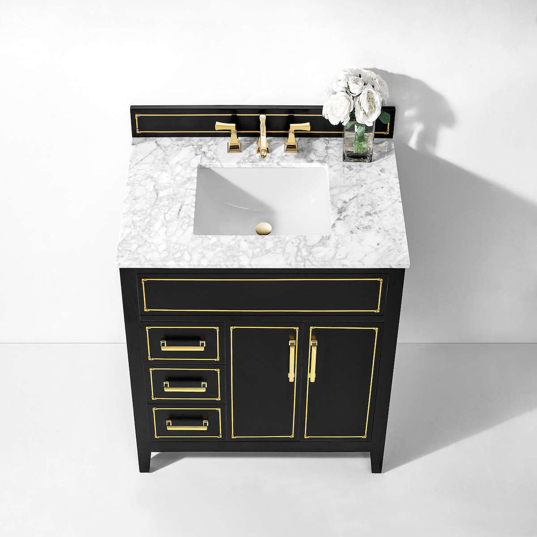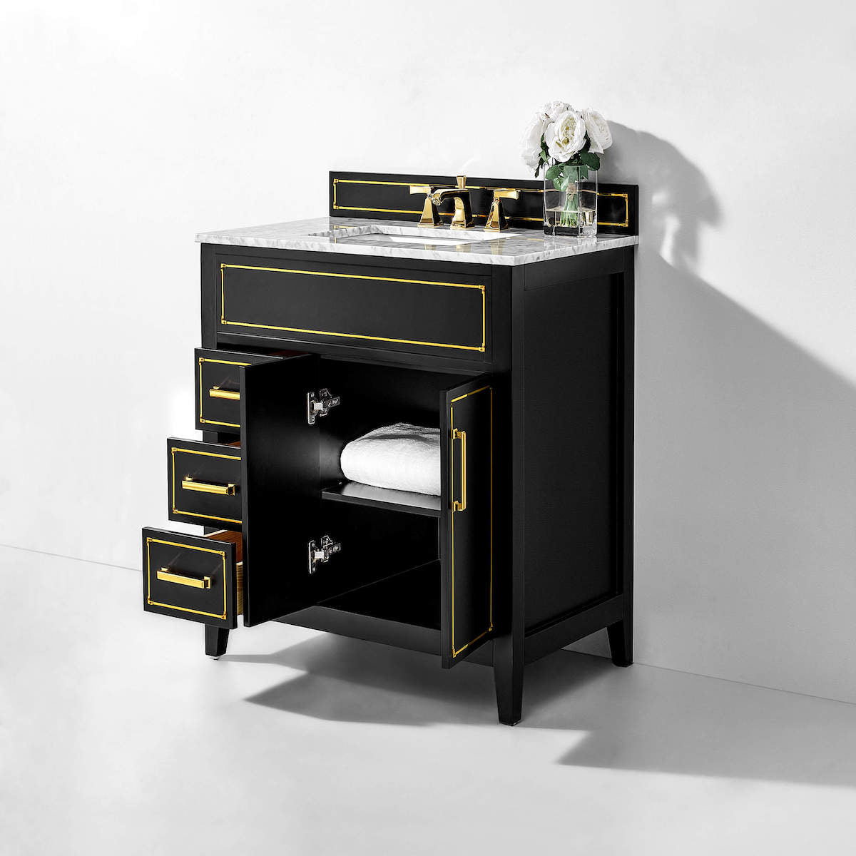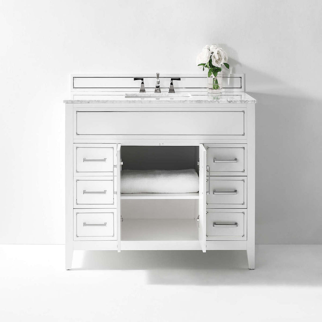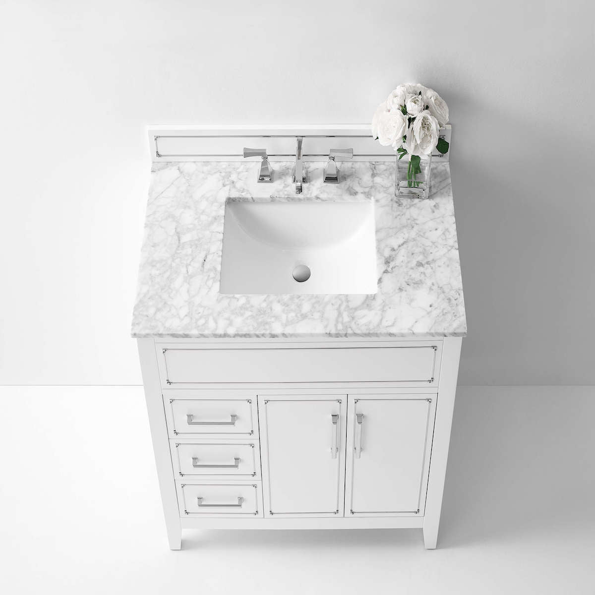 Ancerre Designs Aspen Single Vanity – Luxury Freestanding Bathroom Vanity with Italian Carrara Marble Top