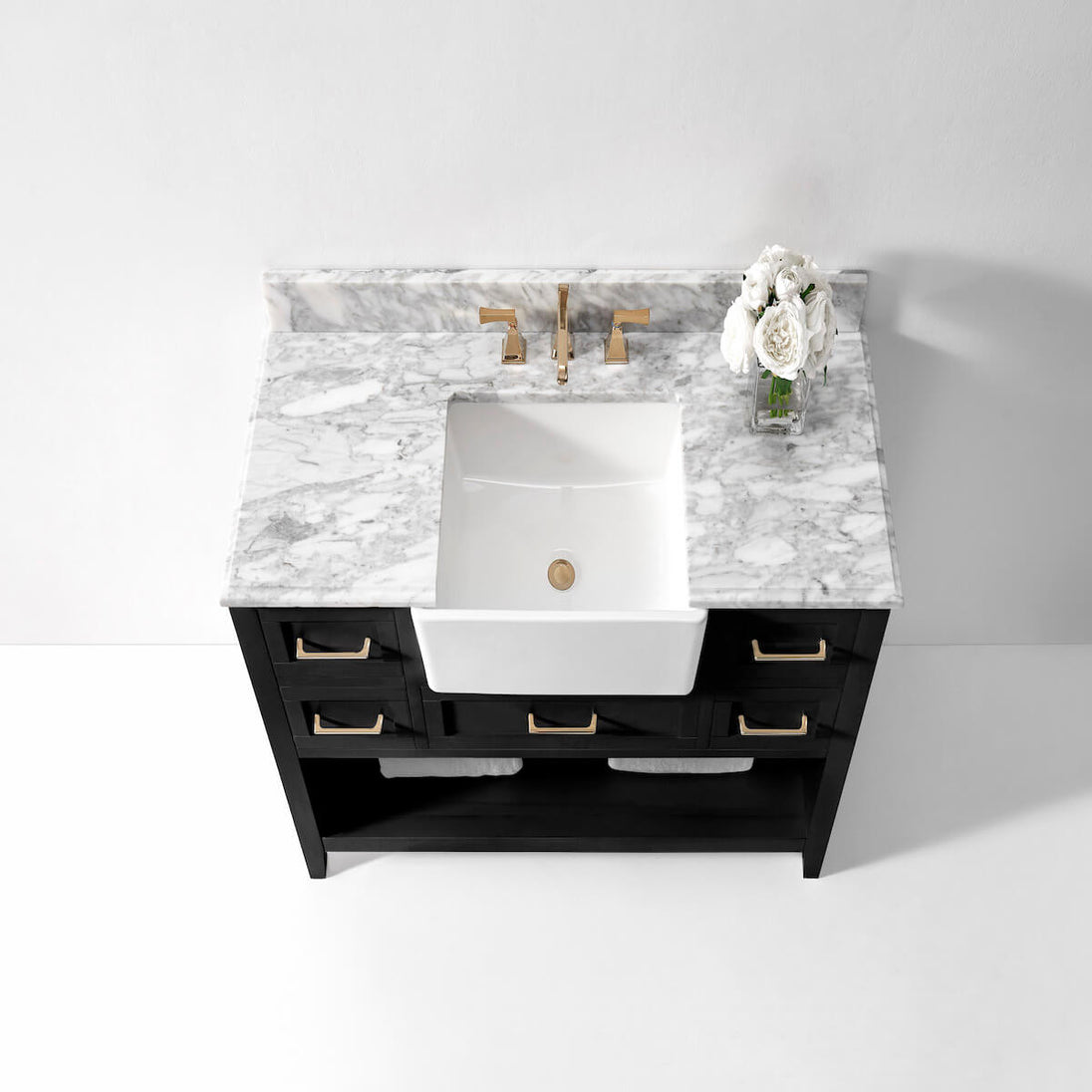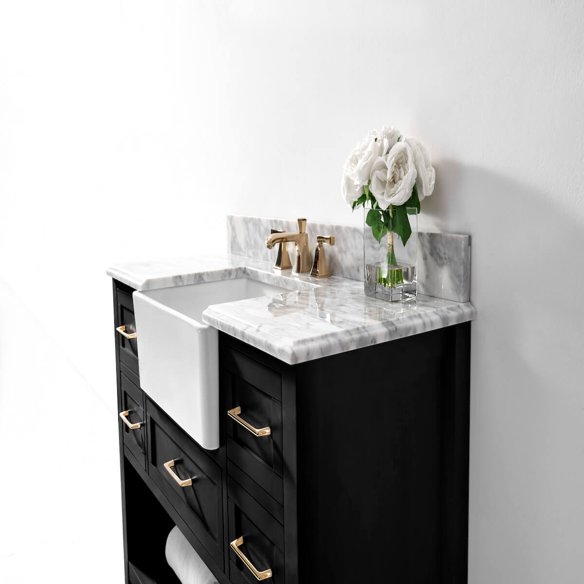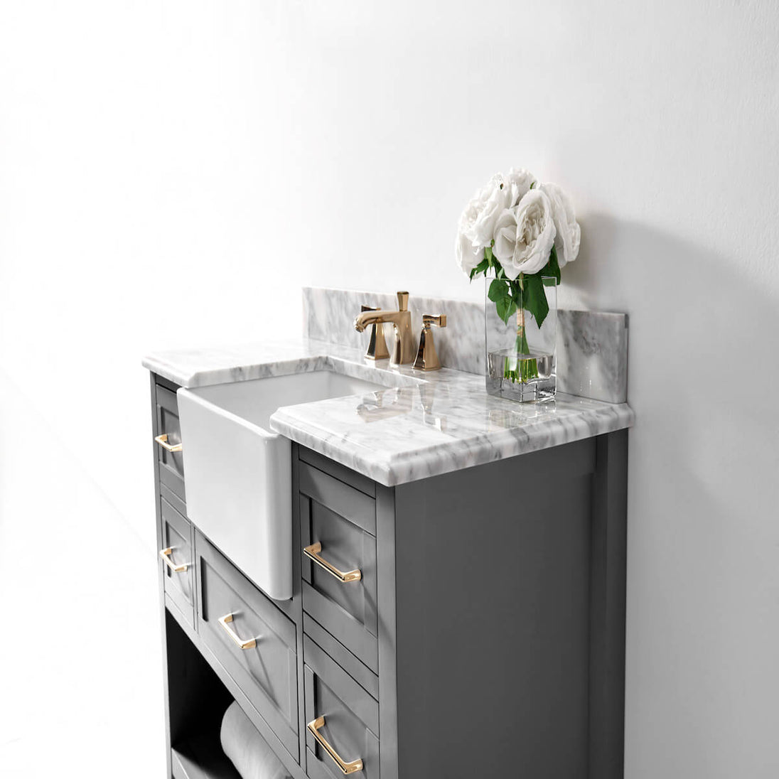 ✔ Satin Brushed Gold Hardware – Adds a modern touch to the vanity
