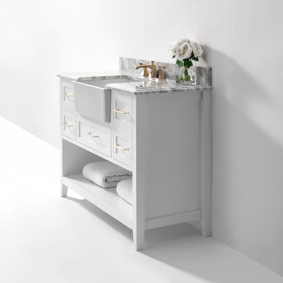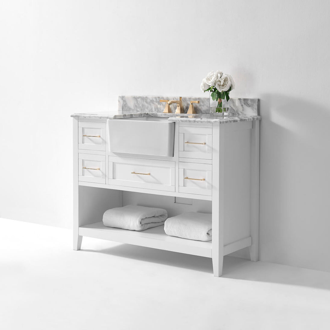 Ancerre Designs Hayley 48” Single Vanity – Elegant Farmhouse Bathroom Vanity with Italian Carrara Marble Top