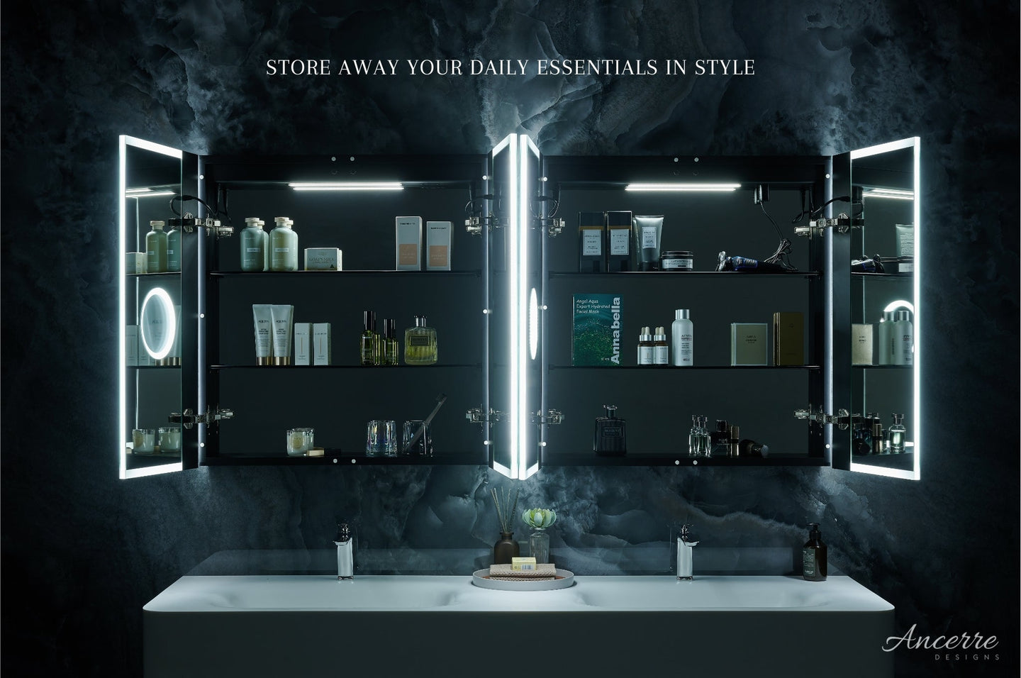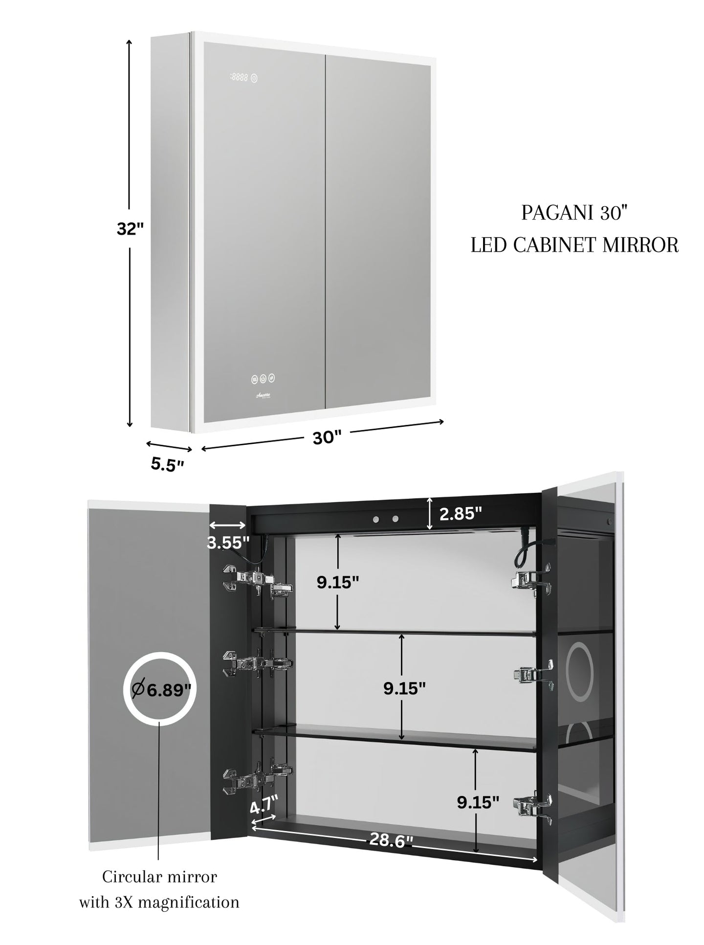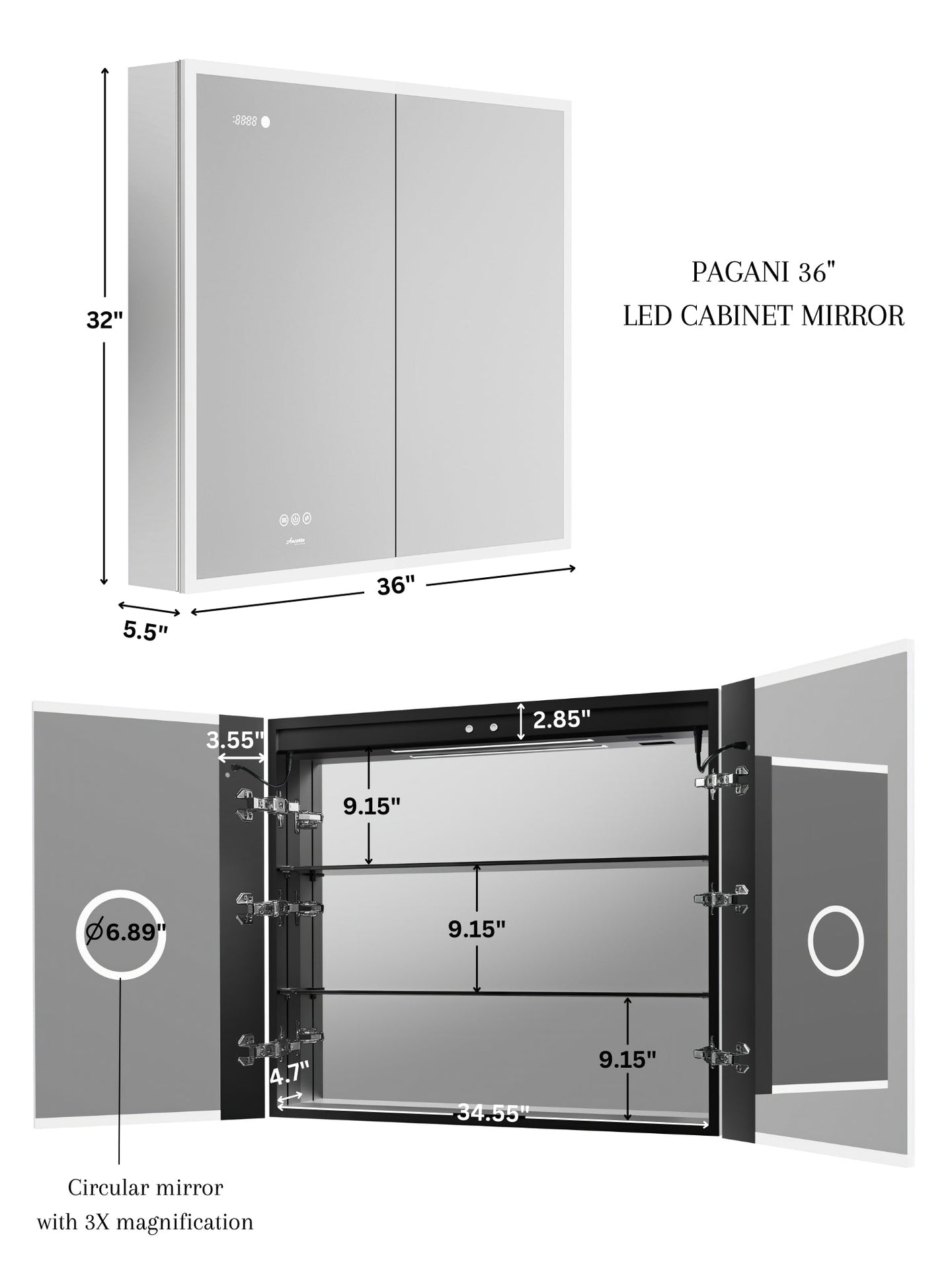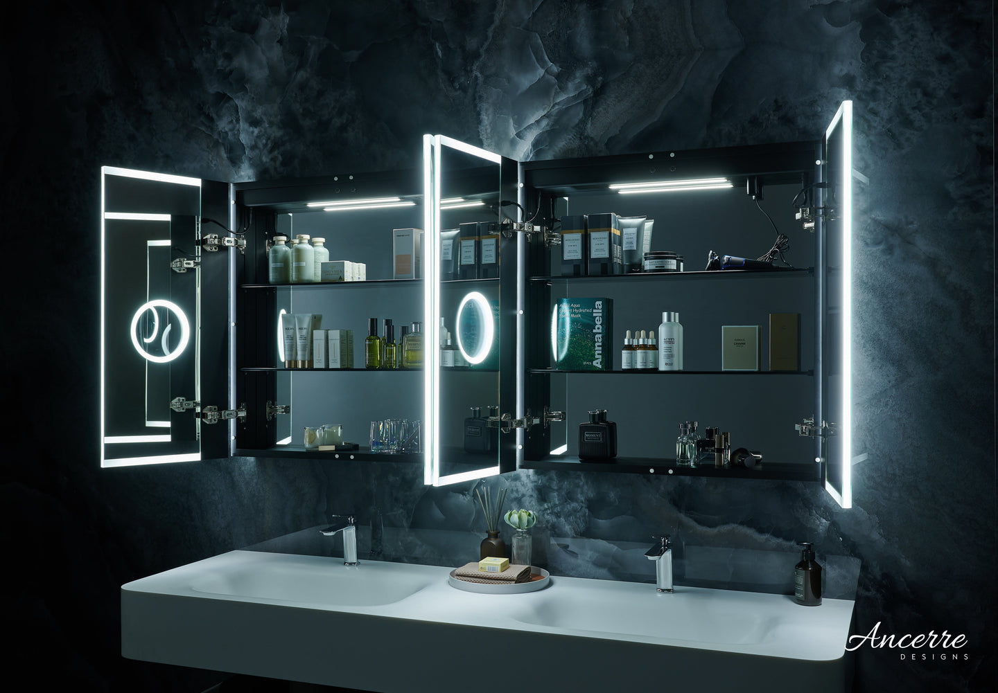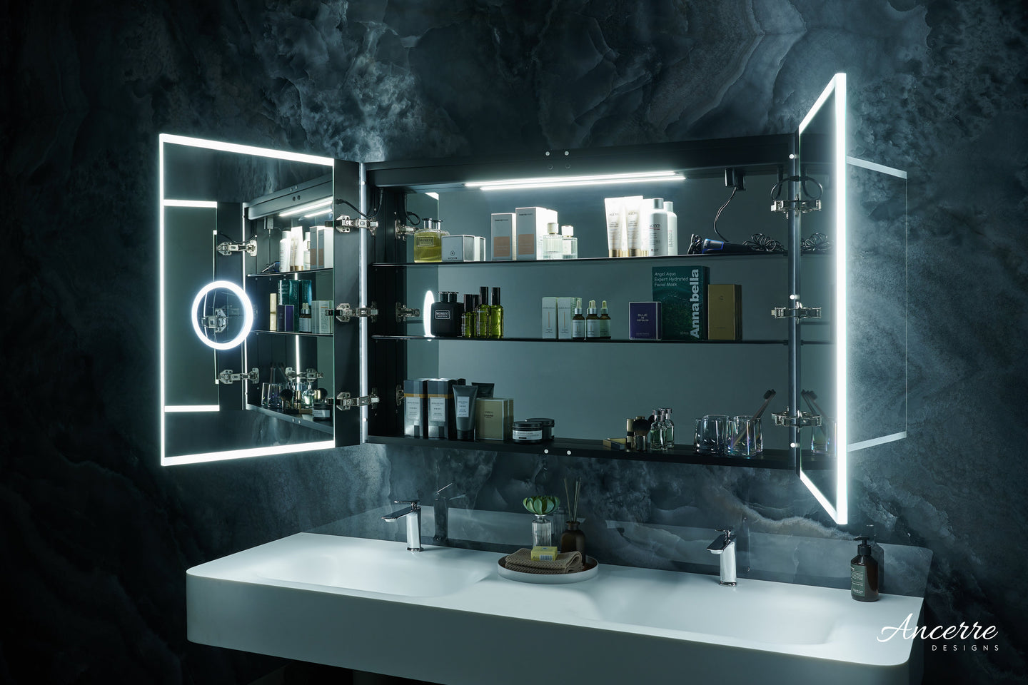 Ancerre Pagani LED Mirror Cabinet with Defogger, Dimmer, Magnifier & USB outlet
