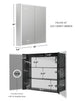 The double-sided mirrored doors open easily to reveal a blacked-out interior equipped with adjustable black glass shelves, perfect for organizing your grooming essentials. Featuring a soft-close door that opens up to 120 degrees and an interior LED light, this cabinet combines convenience with luxury. The electrical/USB outlet combo is ideal for powering electric razors, toothbrushes, and more, streamlining your daily routine.
