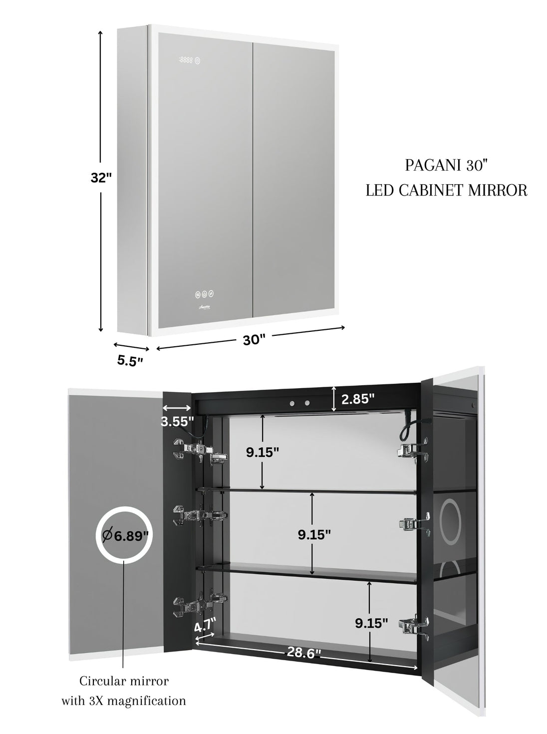 | 30" Pagani LED Mirror Cabinet Instructions/Installation & Specifications: | Instructions/Install --- Specifications |