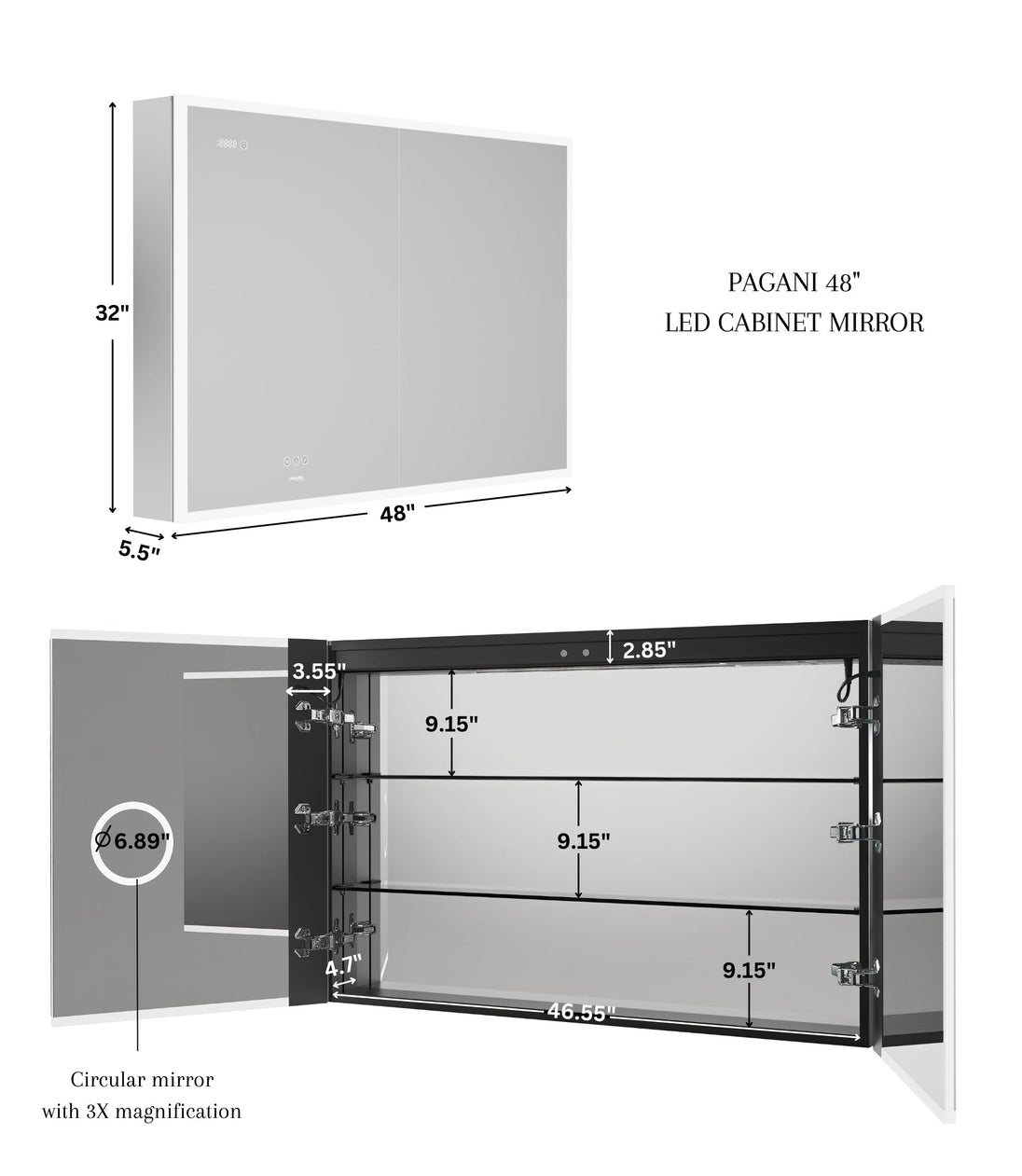 | 48" Pagani LED Mirror Cabinet Instructions/Installation & Specifications: | Instructions/Install -- Specifications |