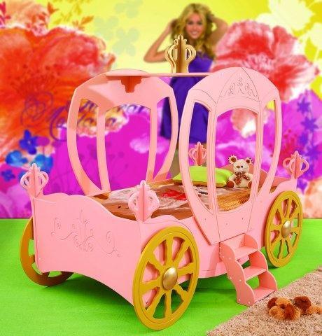 Designed to resemble a royal carriage, this enchanting pink bed sparks imagination and brings storybook dreams to life.
