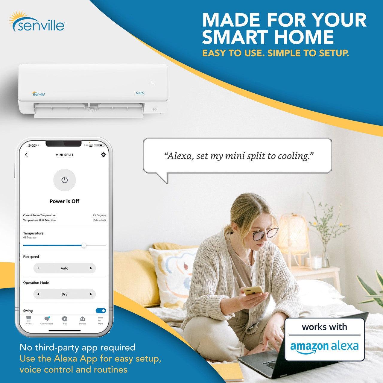 Control your Senville mini split air conditioner with the Alexa app or with voice control using an Alexa enabled device. Set routines, control multiple rooms from anywhere! Works with Alexa. Can be controlled remotely with any Android or iOS phone, via WiFi connection. Control your temperature settings from the office, or while on the road for more efficiency and superior control, as long as you have an internet connection. Great for vacation homes or for better efficiency and temperature control.
