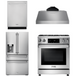 This premium Thor Kitchen appliance package is complete with a 30" Gas Range, 30" Under Cabinet Range Hood, 24" Dishwasher and 36" French Door Refrigerator with Water and Ice Maker In-Door.