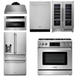 This Thor Kitchen appliance package is complete with a Self-Clean 36" Gas Range, 36" Under Cabinet Range Hood, Refrigerator with Water and Ice Dispenser, Dishwasher, Wine Cooler and a Microwave Drawer.