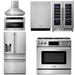 This Thor Kitchen appliance package is complete with a Professional 36" Propane Gas Range, 36" Range Hood, Refrigerator with Water and Ice Dispenser, Dishwasher, Wine Coolers, and a Microwave Drawer.