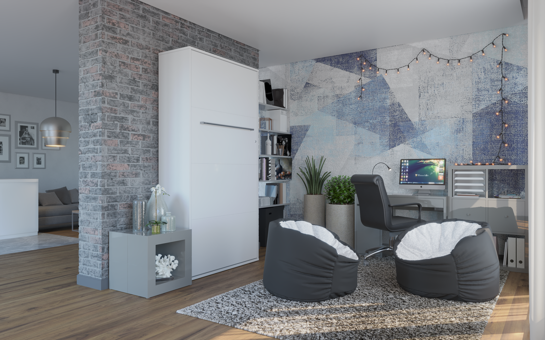 Upgrade your space with the Maxima House INVENTO IN-03 Vertical Murphy Bed, a modern and functional solution for small apartments, guest rooms, and multi-purpose spaces. This European TWIN-sized wall bed includes a premium mattress, integrated LED lighting, and a secure gas spring mechanism for effortless opening and closing. Crafted from durable laminated chipboard, this bed blends style with practicality while optimizing your living space.