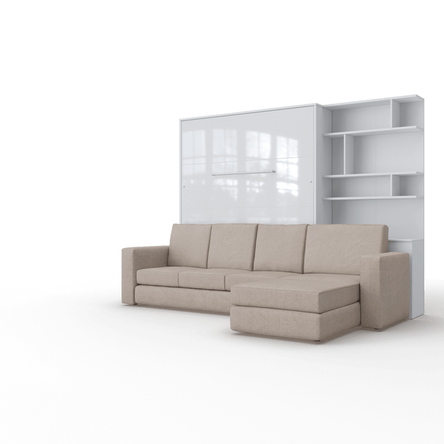 Maxima House Murphy Bed INVENTO European Full XL Vertical with Sectional Sofa & Bookcase - IN001/17W-LB