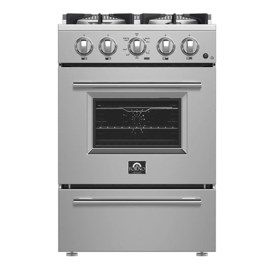 Forno Breno 24-Inch Gas Range with 4 Burners in Stainless Steel (FFSGS6272-24)
