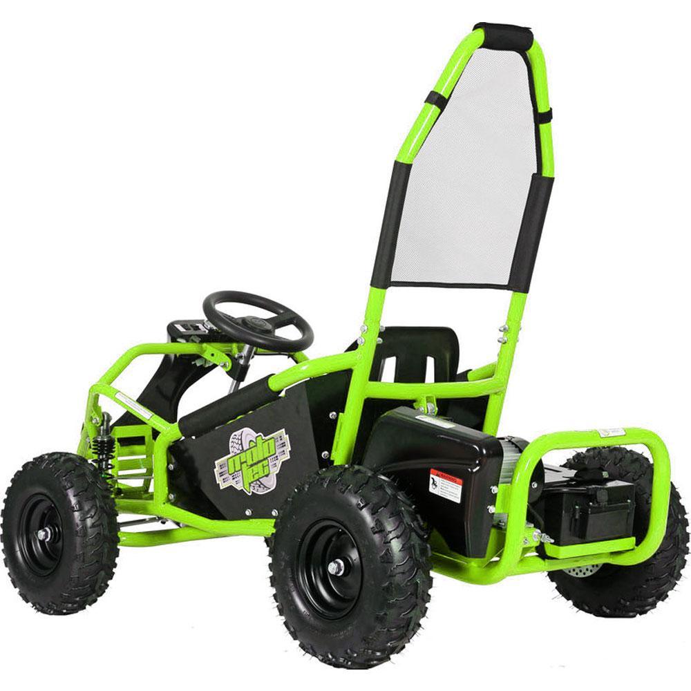 This electric go-kart can be used for fun and kicking dirt. It is equipped with a throttle so you can ride effortlessly. Get around and race in style.