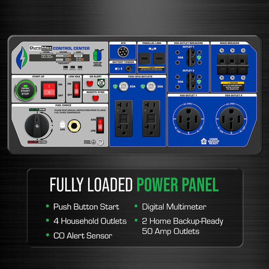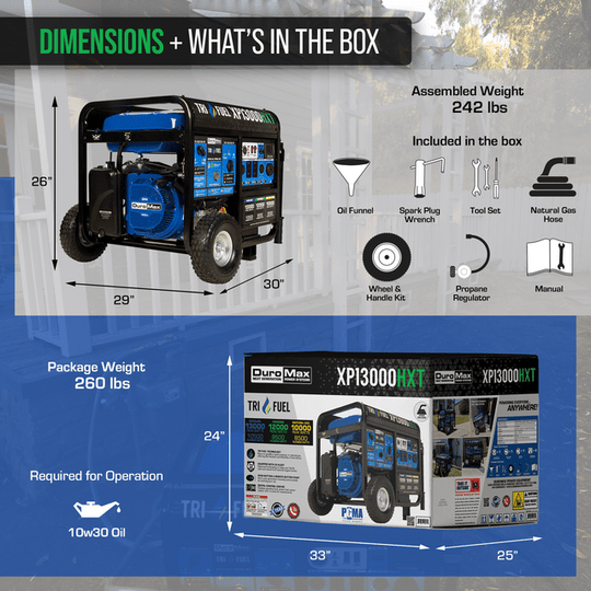 DuroMax 13,000 Watt Electric Start Tri-Fuel Portable Generator w/ CO Alert - XP13000HXT