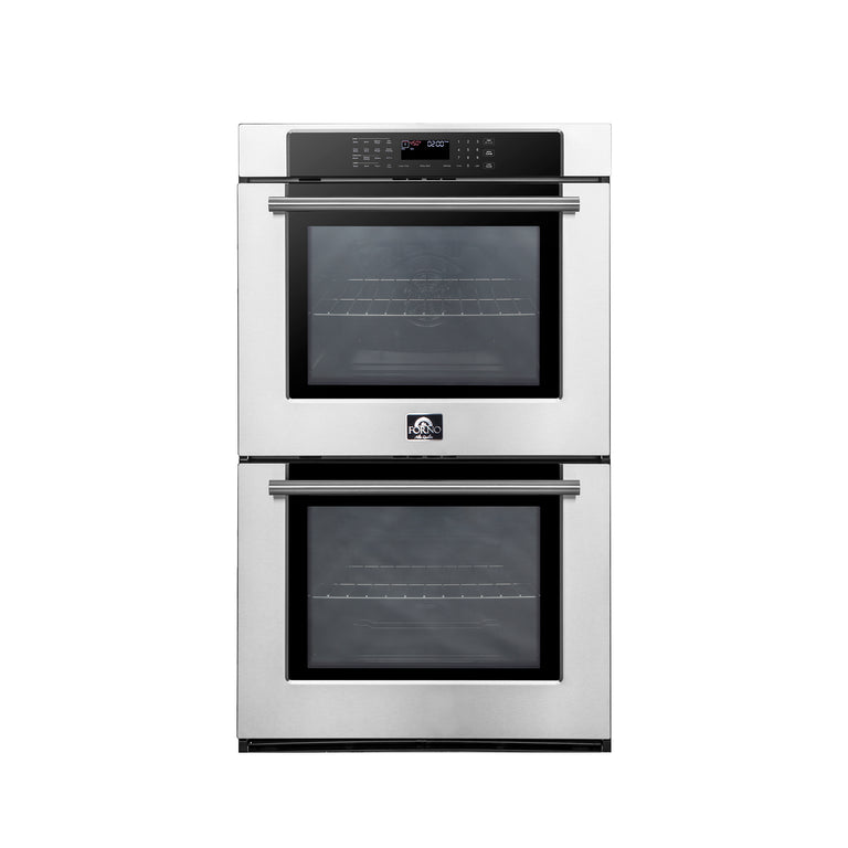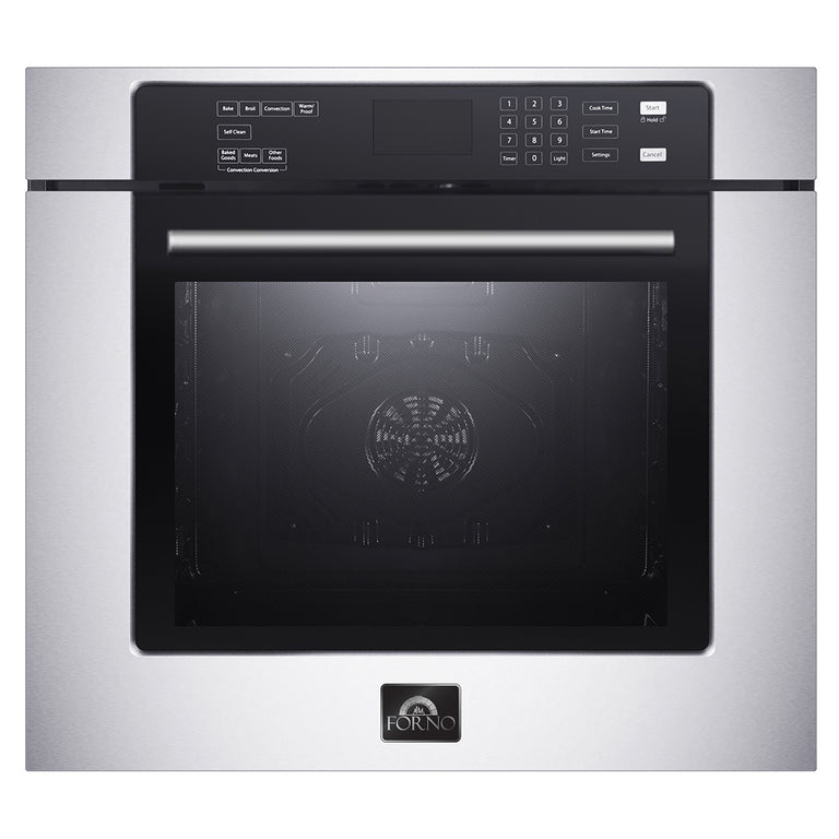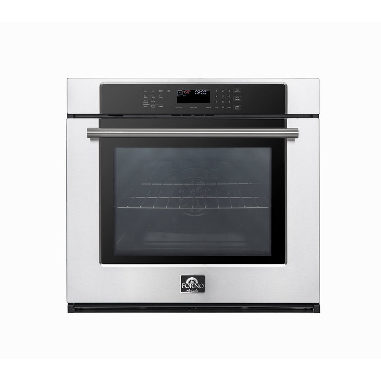 Meet the Forno 30" Electric Wall Oven - your kitchen's ultimate ally. With a generous 5 cu. ft. capacity, this oven guarantees ample cooking space. Featuring True European Convection Fans, it ensures uniform oven temperatures, resulting in perfectly cooked meals every time. The Touch Controls and LCD Display offer easy access to various functions, including Air-Fry, Bake, Broil, Roast, and Warm/Proof, making it a truly versatile addition to your culinary arsenal. Two Electroplated Racks and a Steam Clean Pan with Delay Start/Self Cleaning further elevate your cooking experience. Embrace the convenience and efficiency of the Forno Electric Wall Oven in your kitchen today.