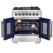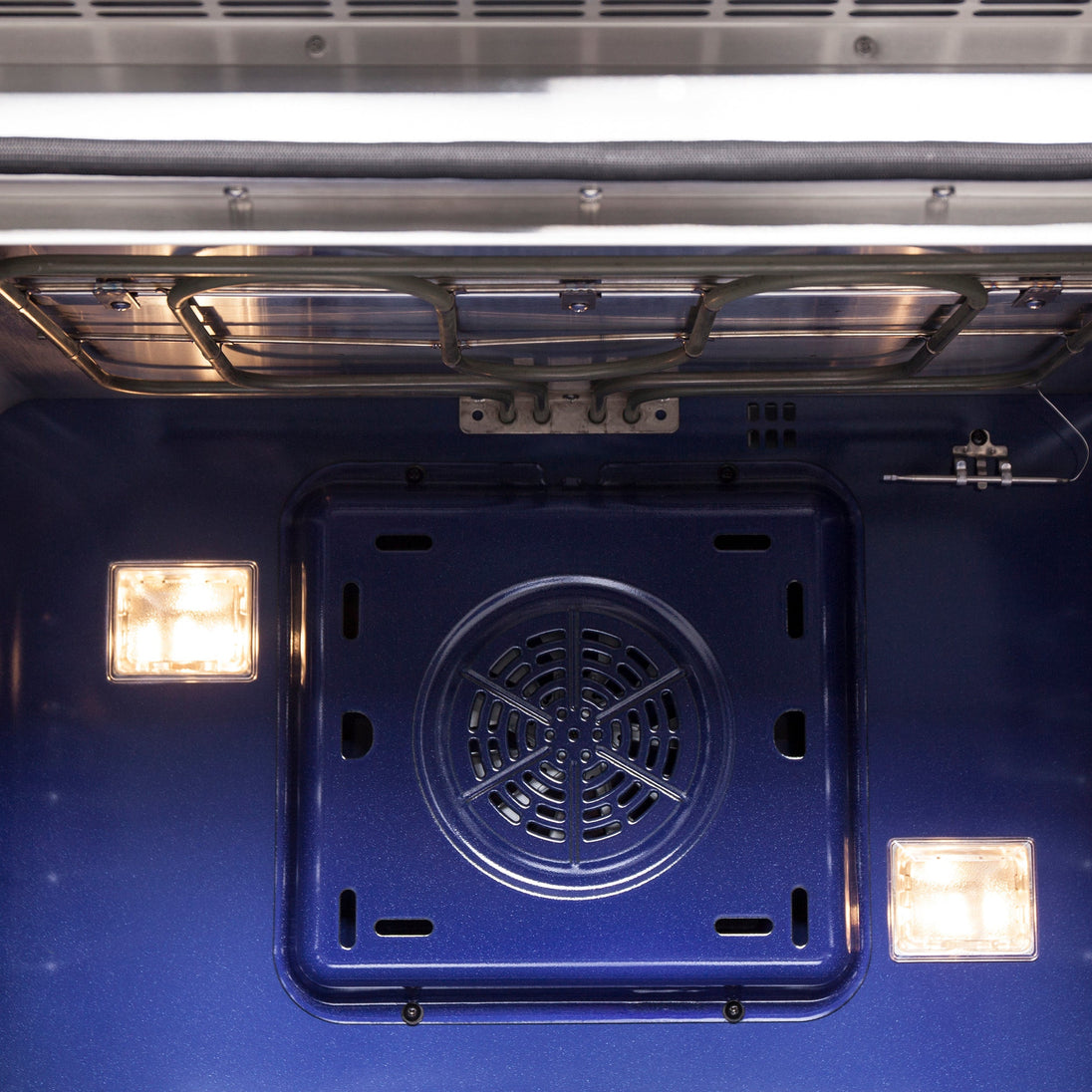- Illuminated Oven Interior. The speckled blue enamel oven interior features 2 halogen lights, offering visibility and an elegant touch