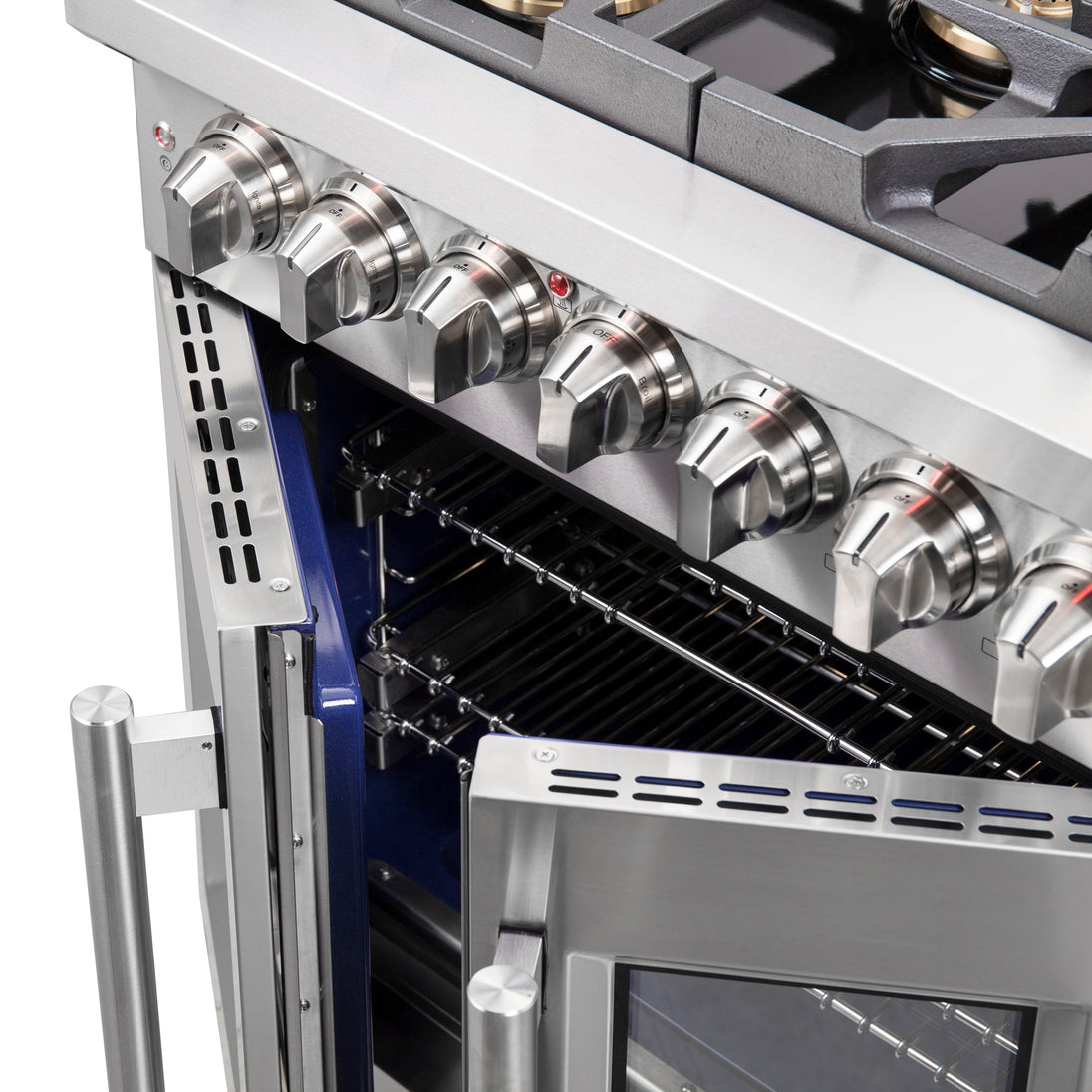 - Pro-Style Design. Pro-style handles and illuminated zinc-coated metal control knobs and bezel rings add sophistication to the appliance's appearance