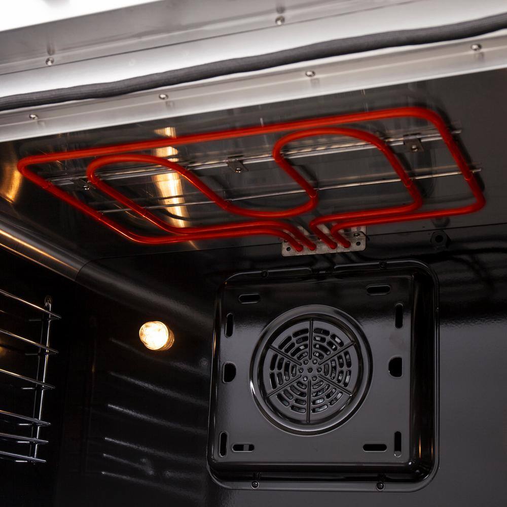 Inside the 5.36 cu. ft. capacity oven, you'll find a combined broil and bake output of 4800 watts, complemented by a 1500-watt true convection fan, ensuring even and precise cooking results. Included for your convenience are 2 chromed oven racks and a power cord, providing versatility and easy setup.