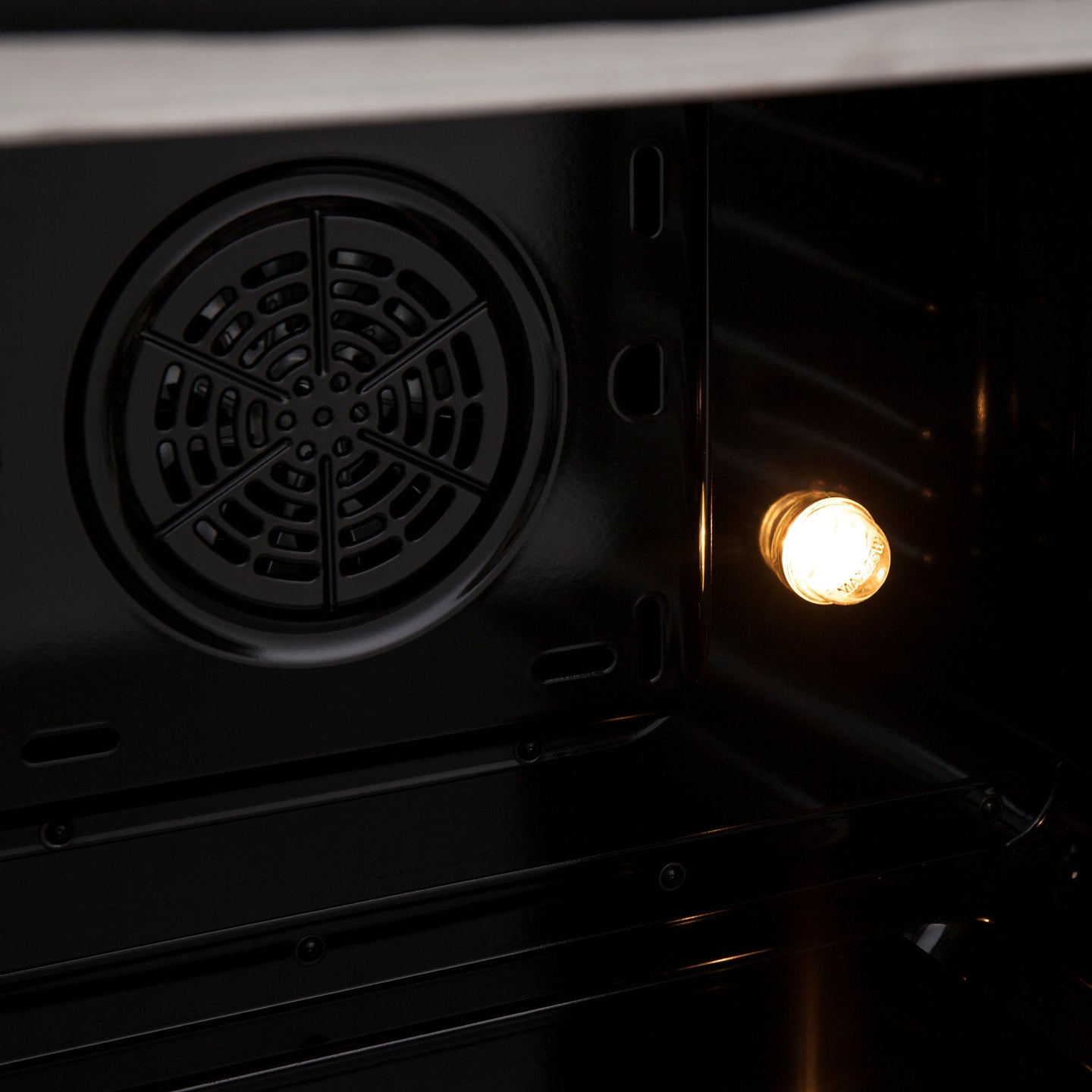 - Illuminated Oven Interior. The black enamel oven interior is illuminated by 2 halogen lights, providing a clear view of your culinary creations