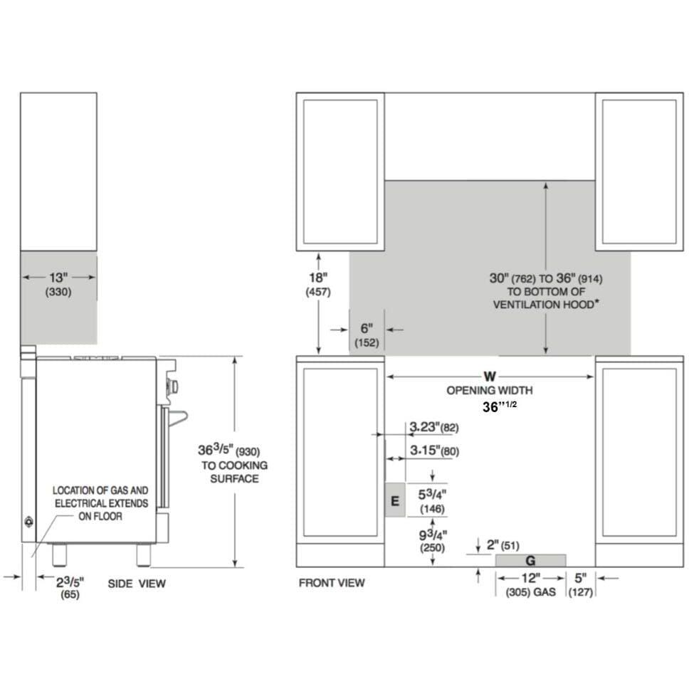 Oven 36” Capacity: 5.36 cu. ft