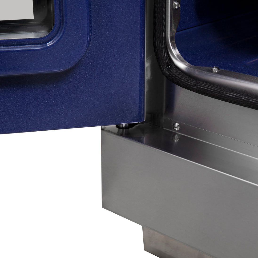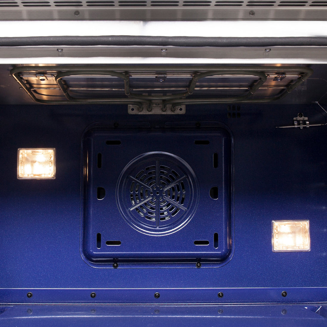 - Illuminated Oven Interior. The speckled blue enamel oven interior features 2 halogen lights, offering visibility and an elegant touch