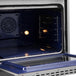 - Well-Lit Cooking Space. The speckled blue enamel oven interior is illuminated by 3 halogen lights, providing excellent visibility while cooking