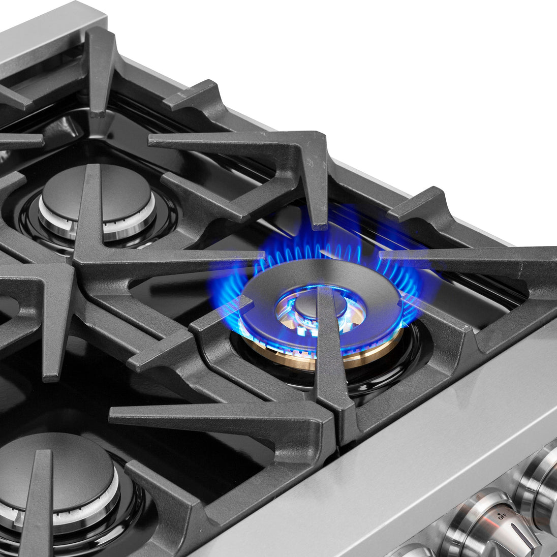 - Powerful Cooking Performance. Boasting 8 sealed burners with a remarkable total stove-top output of 107,000 BTU, including 1 sealed dual-ring brass burner for precise simmering or high-heat searing