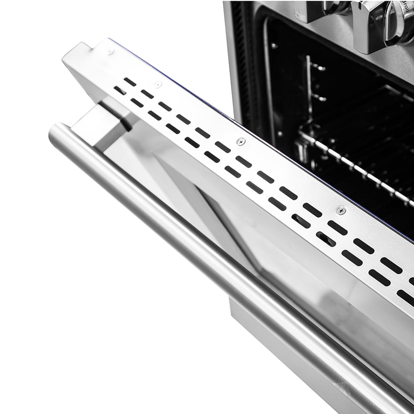 • Insulated Oven Doors. The insulated oven doors feature 3-layer glass windows and smooth friction hinges, enhancing safety and heat retention while allowing you to keep an eye on your culinary creations