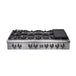 The FORNO ALTA QUALITA 48” Pro-Style Gas Rangetop has a versatile cooktop configuration with 8 sealed dual brass burners totalling 160,000 BTUs to handle any culinary challenge. Heavy duty continuous cast iron grates simplify moving pans around without lifting them off the surface and contoured Zinc Control Knobs allow easy control of the burners for precision gas cooking. Includes Auto-ignition, Griddle, Wok-Ring and LP conversion Kit. Heavy-duty 304 stainless steel cleans easily and beautifully complements other Forno appliances to fit any kitchen design.