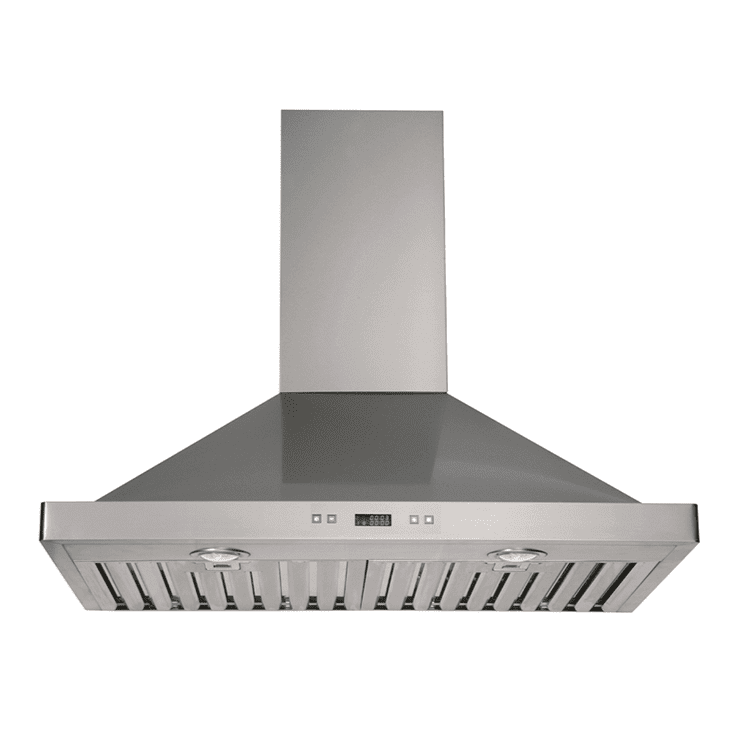 This 36 Inch Wall Mount Range Hood by Forno comes with a power motor with up to 450 CFM of ventilation. The hood also features stainless steel cover, Aluminum Exhaust Pipe, and 4-Speed Push Button Control.