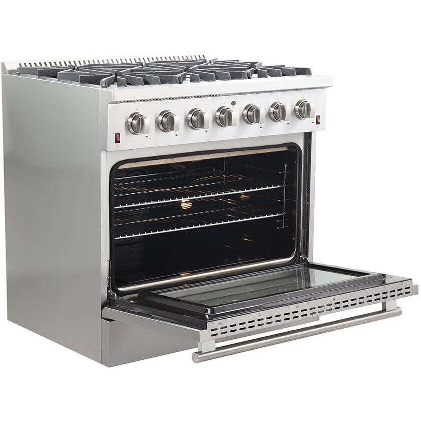 Forno Appliance Package- 36 Inch Gas Range, Wall Mount Range Hood, AP-FFSGS6244-36-W