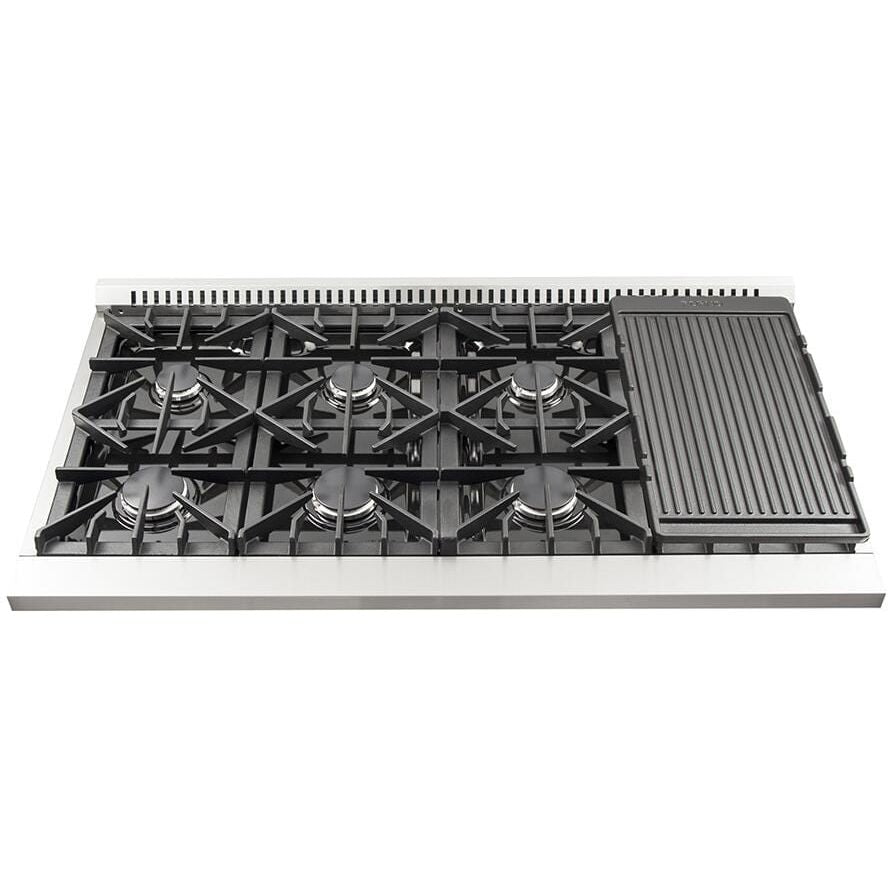 Continuous Cast Iron Grates: Heavy duty cast iron grates make transferring heavy pots and pans over your burners easy.