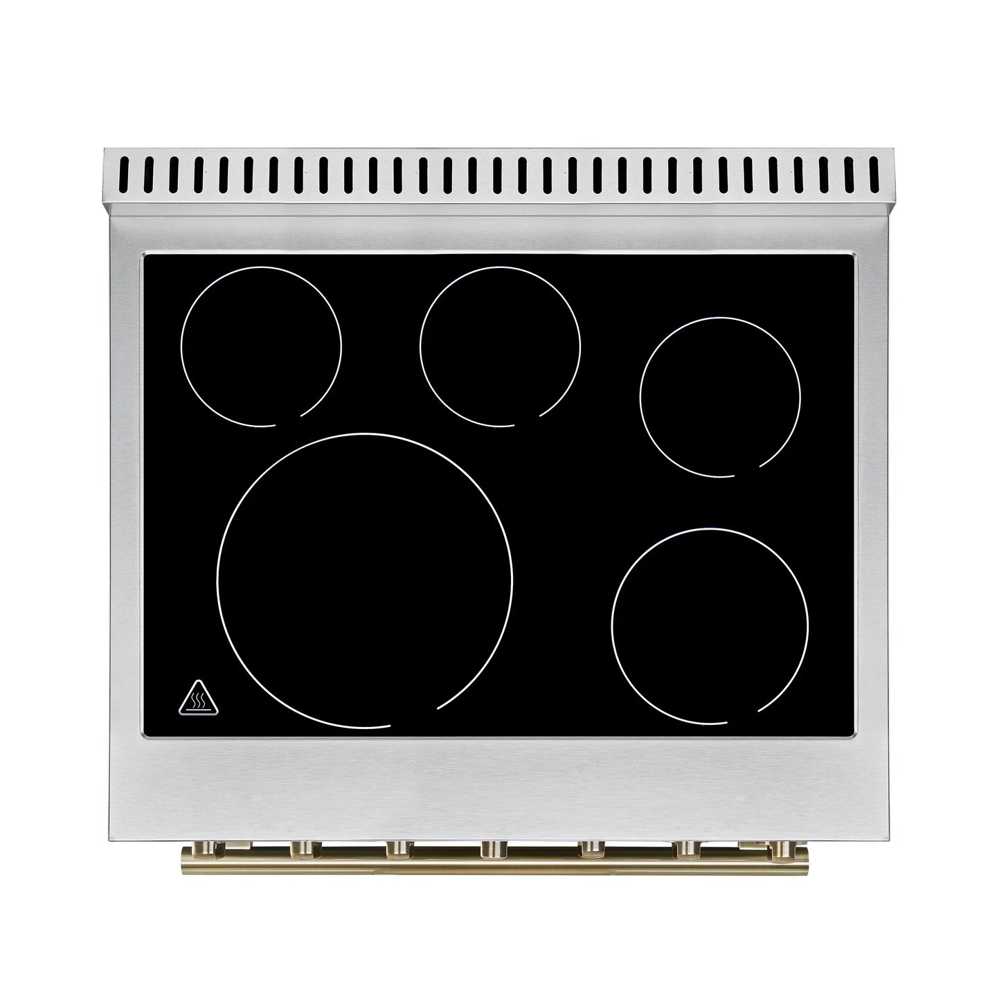Upgrade your kitchen with Forno Paolo's 30" Electric Range. With powerful cooking abilities and a sleek design, this range is the perfect addition to any home. The ceramic glass cooktop has five radiant elements and 7,800 watts of output for even heat distribution. The 4.38 cu.ft. true convection oven cooks faster and more evenly, while a hidden bake element prevents spills from burning for easier cleanup. This durable electric range offers both style and functionality for confident cooking.