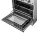 The Giovanni 30 Inch Alta Qualita Gas Range brings a blend of professional style and performance to your kitchen, featuring a robust stainless-steel design. Its 5 sealed burners, including a potent dual-ring burner for boiling or searing, offer a total output of 67,000 BTU, with the added ability to simmer for delicate tasks like melting chocolate or sauces. Notable features include continuous cast iron grates, a wok support, and a reversible griddle for versatile cooking. The 30 Inch oven boasts a 4.32 cu. ft. capacity, a combined broil and bake output of 26,000 BTUs, and a 3-layer glass oven door window. The automatic internal convection fan ensures fast and precise temperature control for consistent cooking. The appliance includes 2 oven racks, an air fryer basket, a drip pan suitable for steam cleaning, and an LP conversion kit. Additionally, the zinc-coated metal knobs with bezel rings promise enduring beauty over time.